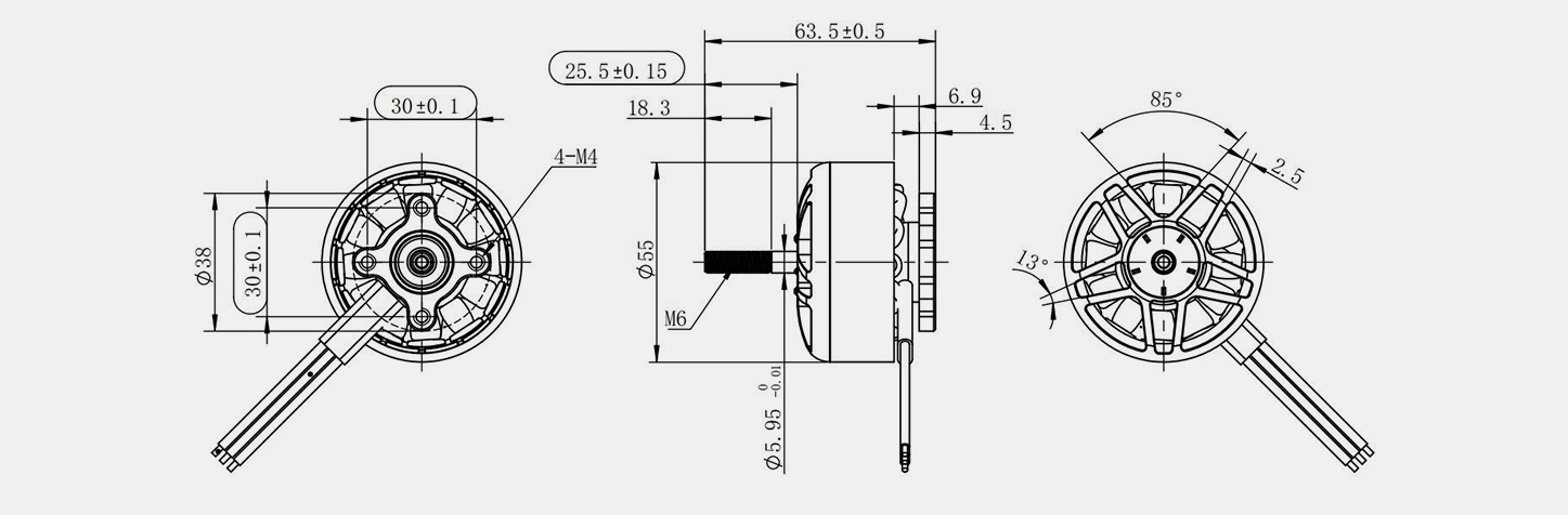 | Maks. hal (W) | Tegangan (V) | Maks. saya. (A) | KV | Arus Tanpa Beban (A) | Perlawanan (mΩ) | Polandia | Motorik Redup. (mm) | Stator redup. (mm) | Pemasangan (mm) | N.W. (g) | Prop. (inci) | ||||||||||||||
